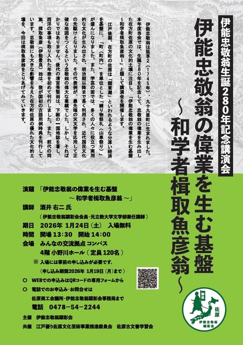 伊能忠敬翁顕彰会主催・講演会の案内について