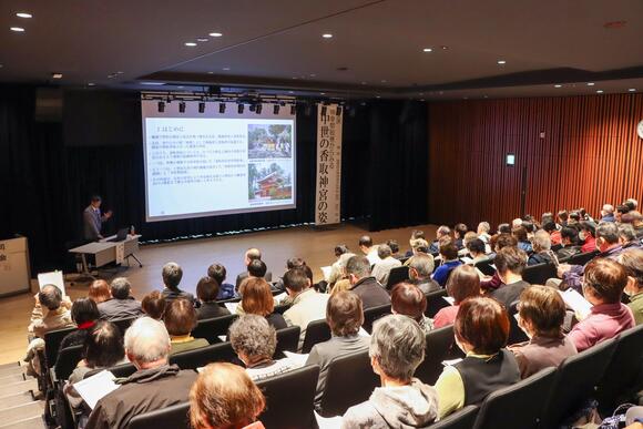 香取市に所在する多くの指定文化財等への関心と、文化財の保存、活用について理解を深めていただくため、令和7年度第2回文化財講演会「神幸祭絵巻からみる中世の香取神宮の姿」を2月14日に開催しました。コンパスの小野川ホールで開催し、約150名の方にご参加いただきました。