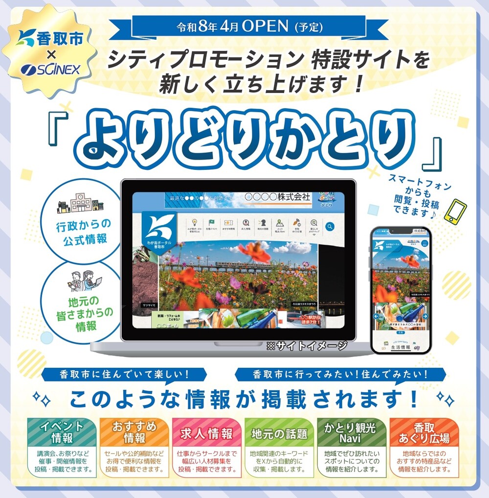香取市では、令和8年4月にシティプロモーション特設サイト「よりどりかとり」を開設予定です。