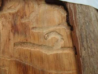 樹皮をはぐと、食害痕が確認できます。(写真5)