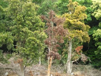 (写真2)左:健全木、中:一昨年被害木、右:当年被害木