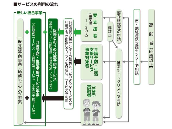 介護保険法の改正により、予防給付として全国一律の基準により提供されている介護予防訪問介護及び介護予防通所介護について、市が取り組む地域支援事業「介護予防・日常生活支援総合事業」(以下「総合事業」)に移行することとされました。