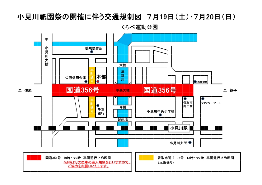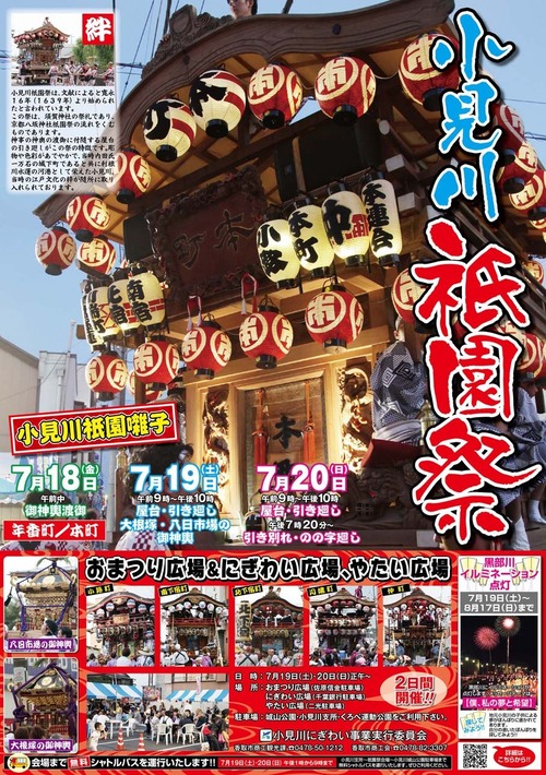 小見川祇園祭開催中、小見川市民センター駐車場および小見川城山公園第2駐車場からお祭り区域付近まで無料のシャトルバスを運行します。
