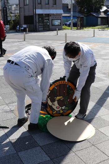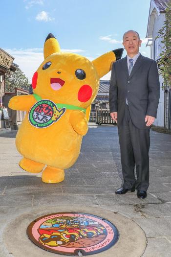 In 2021 November 10, The Rollout Ceremony was held. Mayor Ui, special guests including Pikachu and children of the Sawara Kindergarten joined in the ceremony. At the ceremony, Mayor Ui greeted and said “Pokémon is popular in not only Japan but also all over the world. I expect the Poké Lids will contribute on the sightseeing promotion. ” After the ceremony, the Poké Lids were installed in JR Sawara station, Inoh Tadataka Museum, Suigo Sawara Ayame Park, and Roadside Station and Riverside Station Mizu-no-Sato Sawara based on the wishes of the donor.